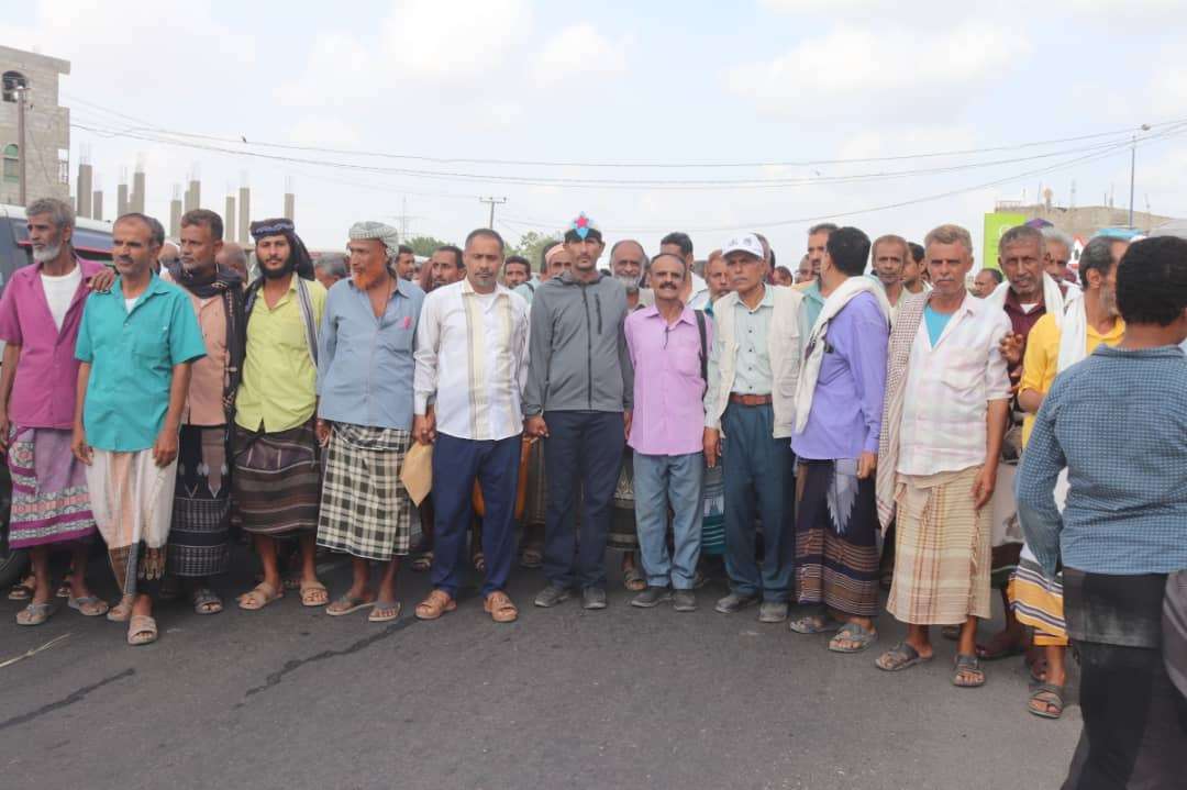 حوطة لحج تشهد مسيرة حاشدة سلمية عمالية .. انصدمت بإغلاق بوابة مقر المحافظة أمام مطالبهم