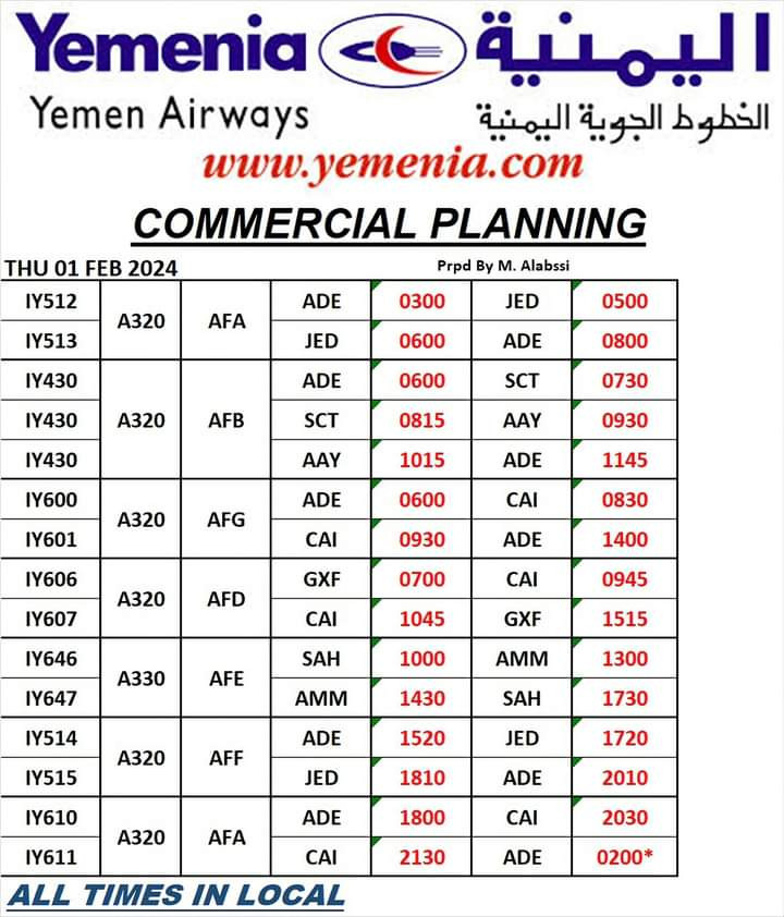 حفظ الصورة مواعيد رحلات طيران اليمنية الخميس 1 فبراير 2024 الأربعاء ٣١ يناير ٢٠٢٤ الساعة ١٠:١٨ مساءً متابعات/ مجال نت