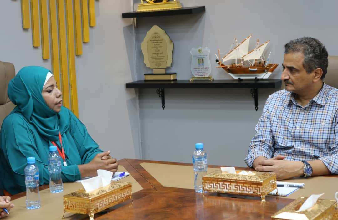 شهد مكتب معالي وزير الدولة محافظ محافظة عدن احمد حامد لملس بالعاصمة عدن صباح اليوم لقاءا مع رئيسة مؤسسة ارمان نسيم احمد سالم لتفعيل قانون التوظيف لذوي الاحتياجات الخاصة 61 لعام 1999
