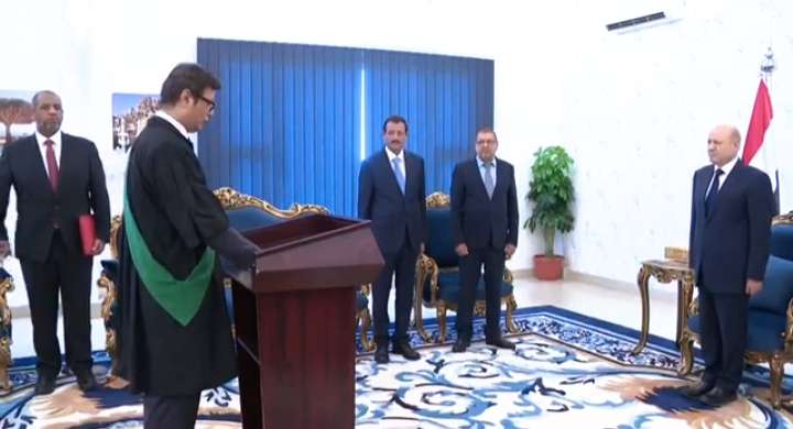 القاضي صالح المرفدي يؤدي اليمين القانونية امام رئيس مجلس القيادة الرئاسي