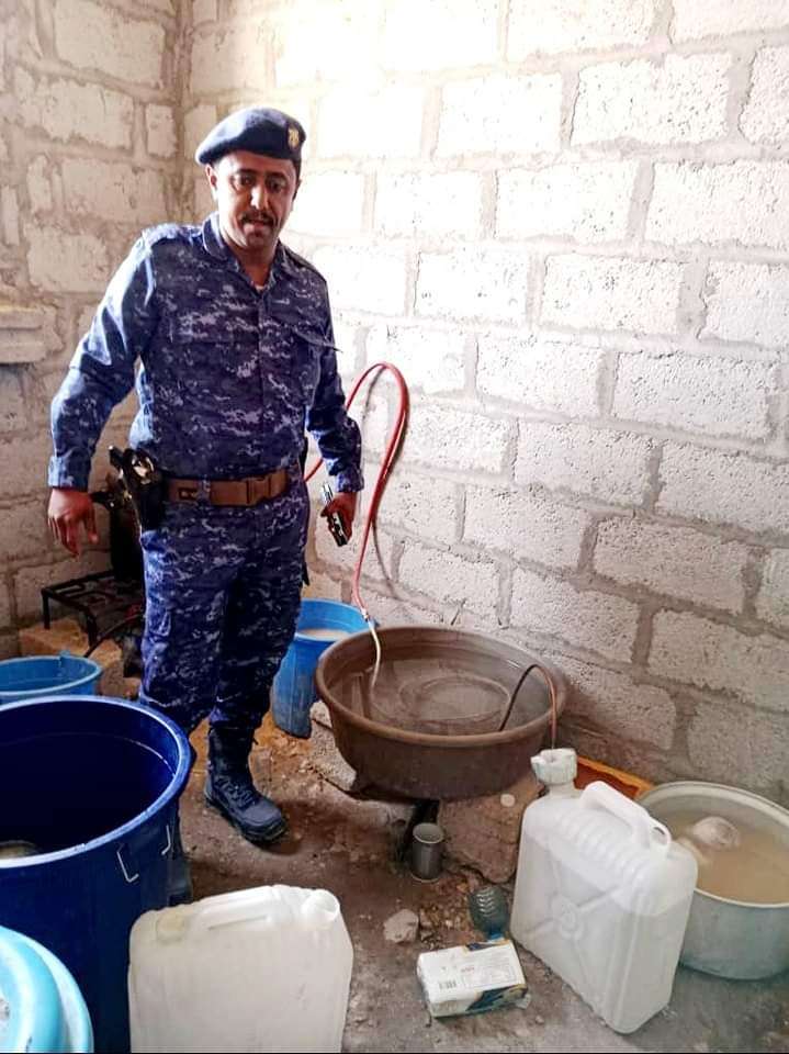وأوضح المقدم علي مسعود الدحبول قائد شرطة الدوريات وامن الطرق بأن وحدة من شرطة الدوريات تمكنت من ضبط مصنع للخمر البلدي وتقطيرة بواسطة أدوات تقليدية.