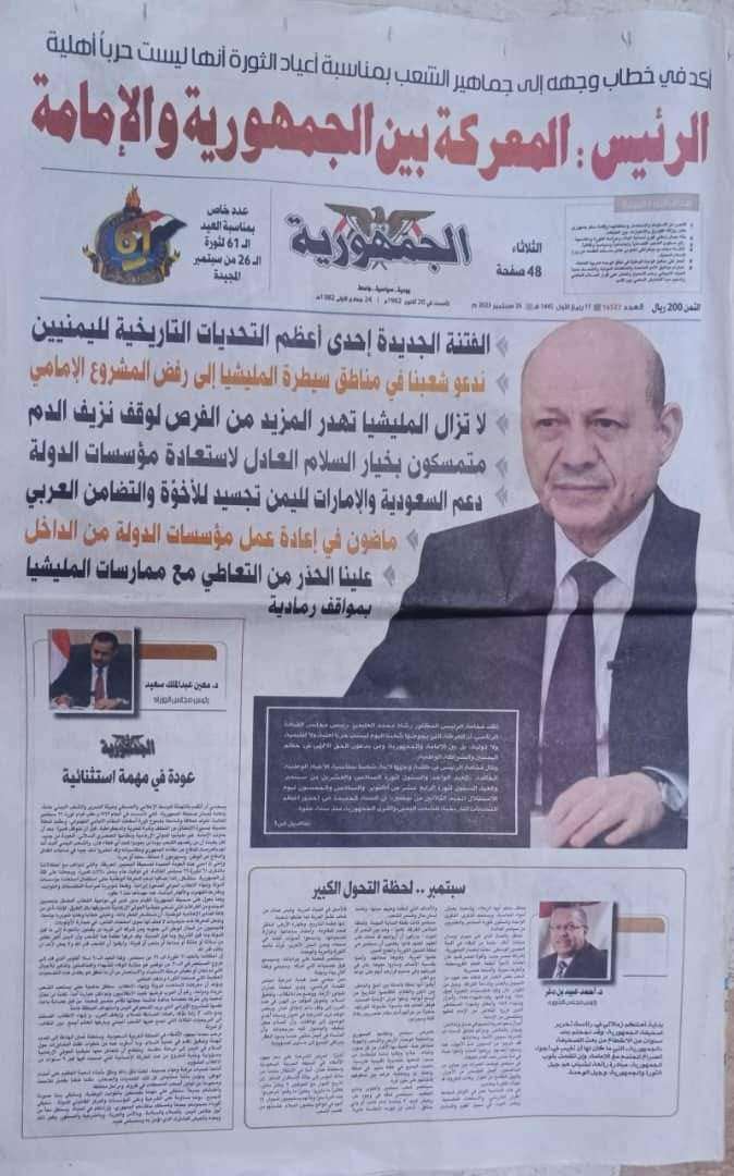 ناشد موظفو وصحفيو مؤسسة الجمهورية للصحافة والطباعة والنشر دولة رئيس مجلس الوزراء الدكتور / احمد عوض بن مبارك بسرعة التدخل العاجل والزام وزارة المالية بسرعة صرف رواتب موظفي وصحفيي مؤسسة الجمهورية كونه لم يعد هناك مبررا لتاخير اطلاق رواتب موظفي المؤسسة، رغم المواعيد التي سبق وان طرحوها باطلاق رواتب موظفي المؤسسة بعد عودة رئيس مجلس الوزراء.. ورغم عودة الحكومة برئيس وزراء جديد... الا ان مواعيد المالية مازالت (مواعيد عرقوب) ومازال موظفو الصحيفة بدون رواتب... ليس ذلك فحسب بل ان الموازنة التشغيلية التي وجه بها فخامة الرئيس دكتور رشاد العليمي لتشغيل واعادة اصدار صحيفة الجمهورية والتي لا تفي بتشغيل الموقع حسب تاكيد رئيس مجلس الادارة ورئيس التحرير الاستاذ / بلال الطيب.