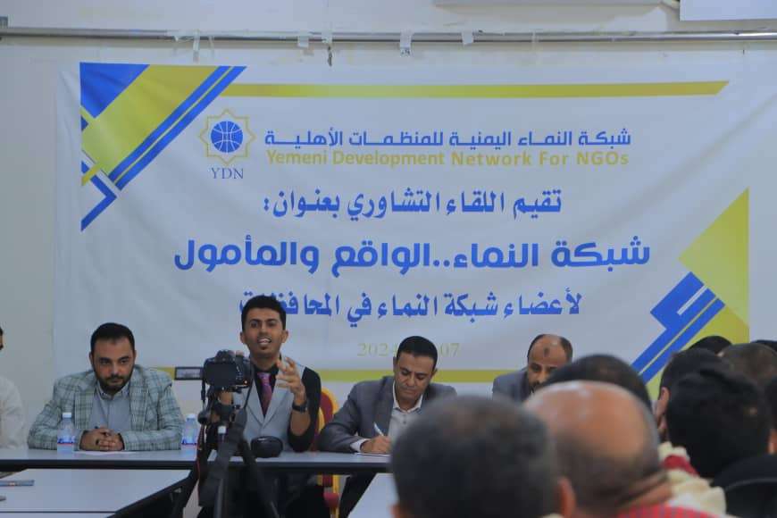 عقدت شبكة النماء اليمنية للمنظمات الأهلية YDN لقاءً تشاورياً بمديري المكاتب وممثلي المنظمات الأهلية والإنسانية في المحافظات تحت عنوان "شبكة النماء.. الواقع والمأمول".