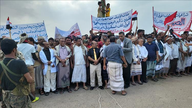 وقفة احتجاجية في جنوب الحديدة للتنديد بمخاطر إغراق السفينة روبيمار