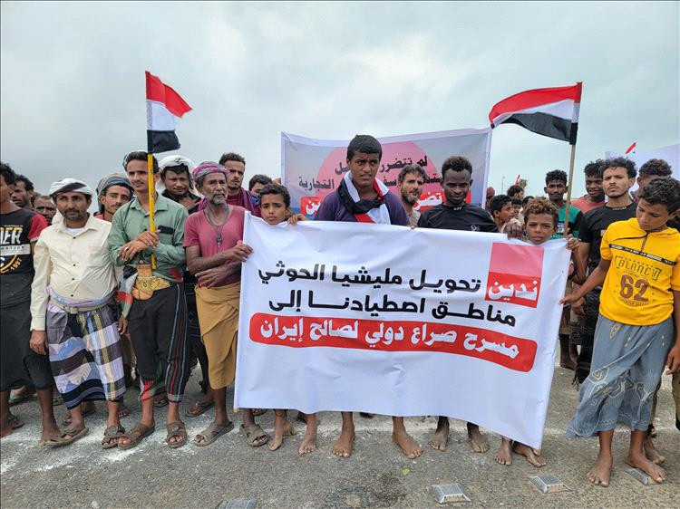 وعبر المحتجون في الوقفة عن رفضهم لتحويل مليشيا الحوثي مناطق اصطيادهم إلى;