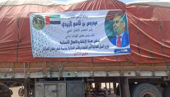 وتشمل 30 قاطرة بحمولة على متنها 45000 سلة غذائية مخصصة لأسر الشهداء والمحتاحين، برعاية الرئيس عيدروس الزُبيدي، رئيس المجلس الانتقالي الجنوبي.