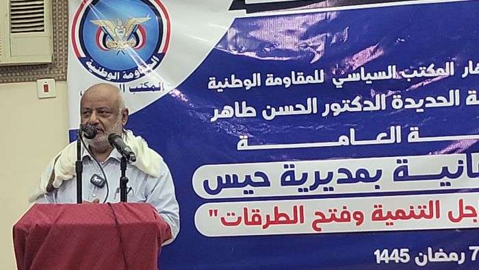 وخلال الأمسية، التي بُدئت بالنشيد الوطني وآيات من الذكر الحكيم وخرجت ببيان يجدد المطالبة للأمم المتحدة بالضغط على مليشيا الحوثي لفتح خط حيس- الجراحي، ألقى المحافظ طاهر كلمة رحب في مستهلها بالحضور، مشيدًا بالمواقف الوطنية لأبناء حيس وتكاتفهم مع السلطة المحلية في القيام بمهامها.
