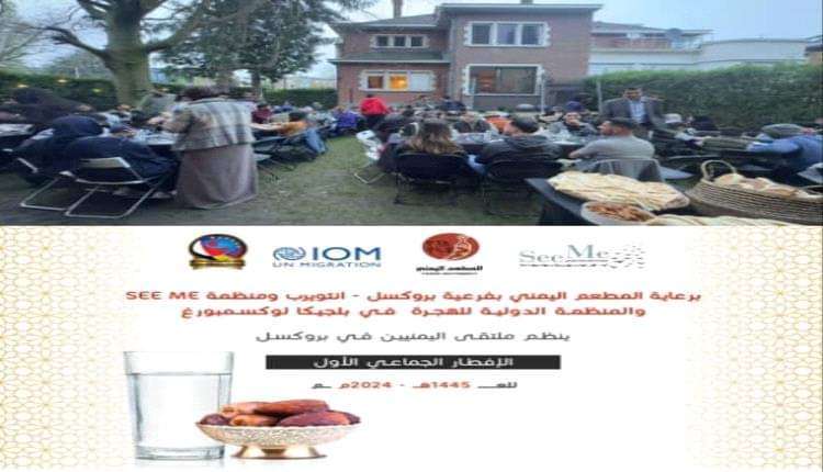 نظم ملتقى اليمنيين في بروكسل الإفطار الجماعي الاول 1445هـ -2024 برعاية المطعم اليمني بفرعيه (بروكسيل -أنتويرب )