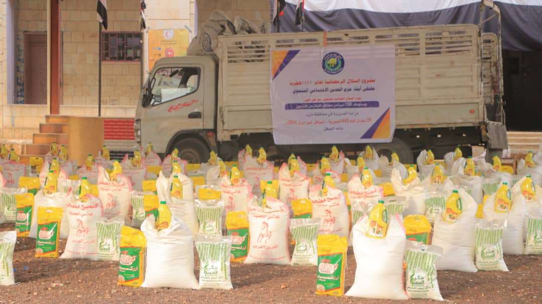 وزع ملتقى ابناء حزم العدين بمحافظة مارب 100 سلة غذائية لعدد مائة أسرة نازحة من أسر الشهداء والجرحى التابعة لمديرية حزم العدين، والتي تقطن في مخيمات النزوح بالمحافظة.