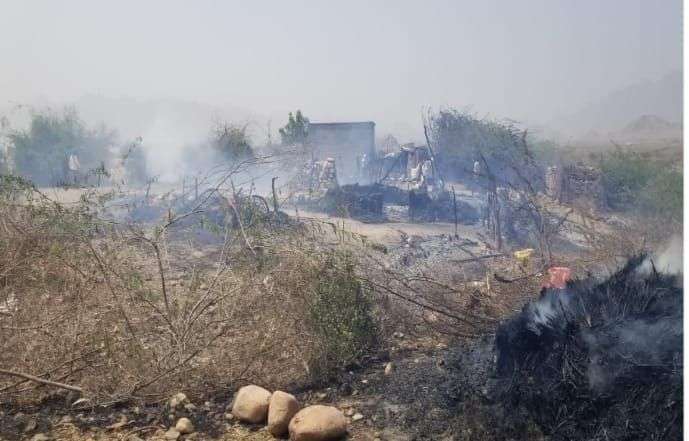 إصابة نازحين واحتراق 4 مساكن جراء حريق مخيم للنازحين في الحديدة