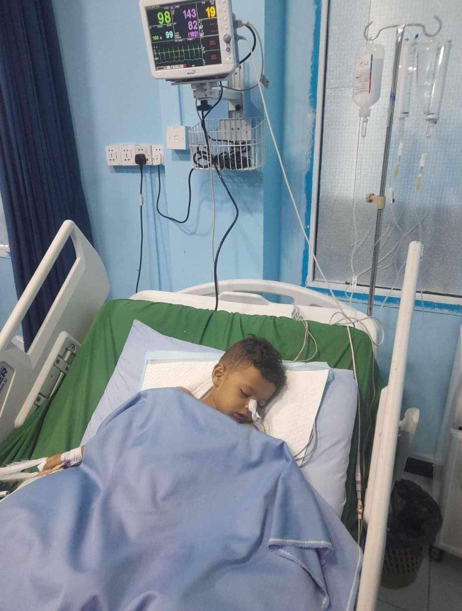ناشد مواطنون بانقاذ طفل يعاني من تكسرات بالدم وبفشل كلوي يرقد بالعانية المركزة بعدن