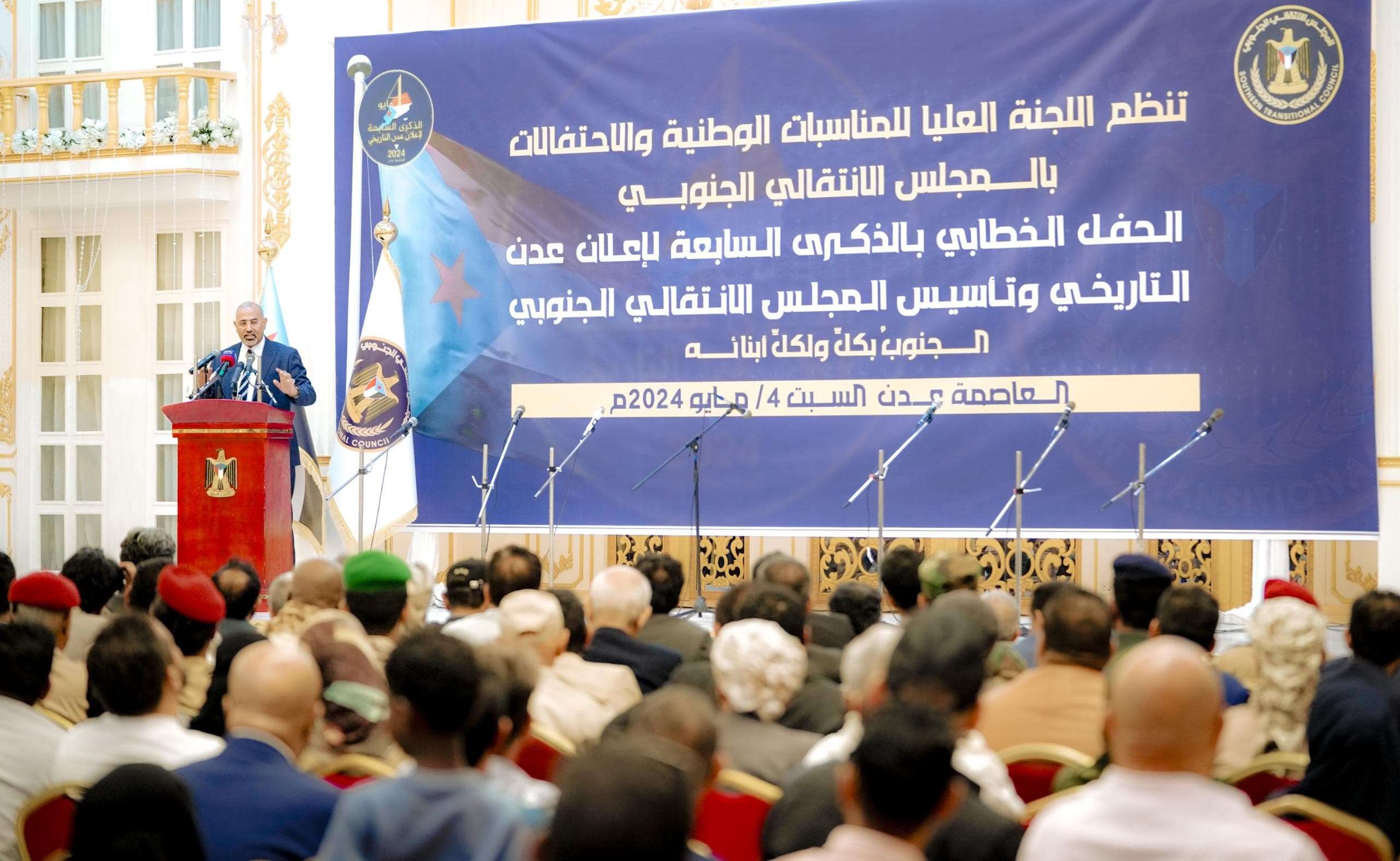 نص كلمة الزُبيدي في الحفل الخطابي بمناسبة الذكرى السابعة لإعلان عدن التاريخي وتأسيس المجلس الانتقالي