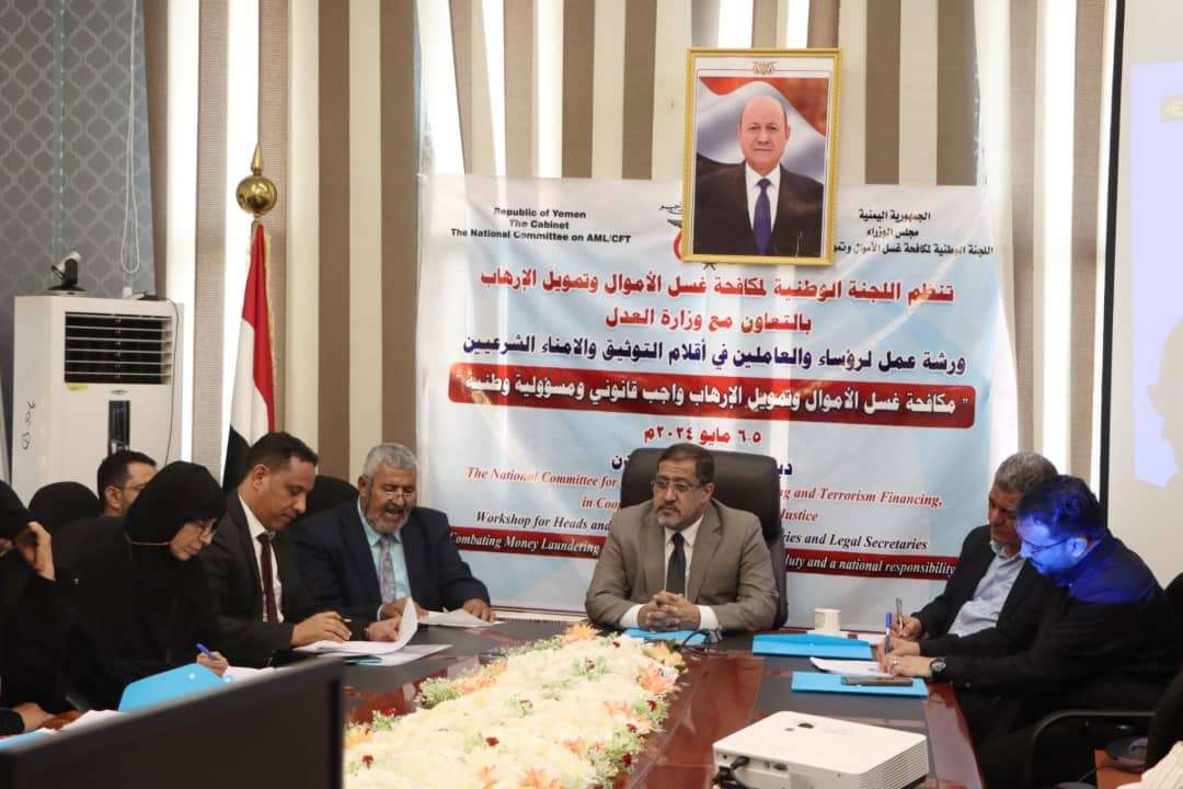 نظمت اللجنة الوطنية لمكافحة غسل الأموال وتمويل الإرهاب بعدن بالتعاون مع وزارة العدل اليوم الأحد الموافق 5 مايو 2024م ورشة عمل بعنوان "مكافحة غسل الأموال واجب قانوني ومسؤولية وطنية".