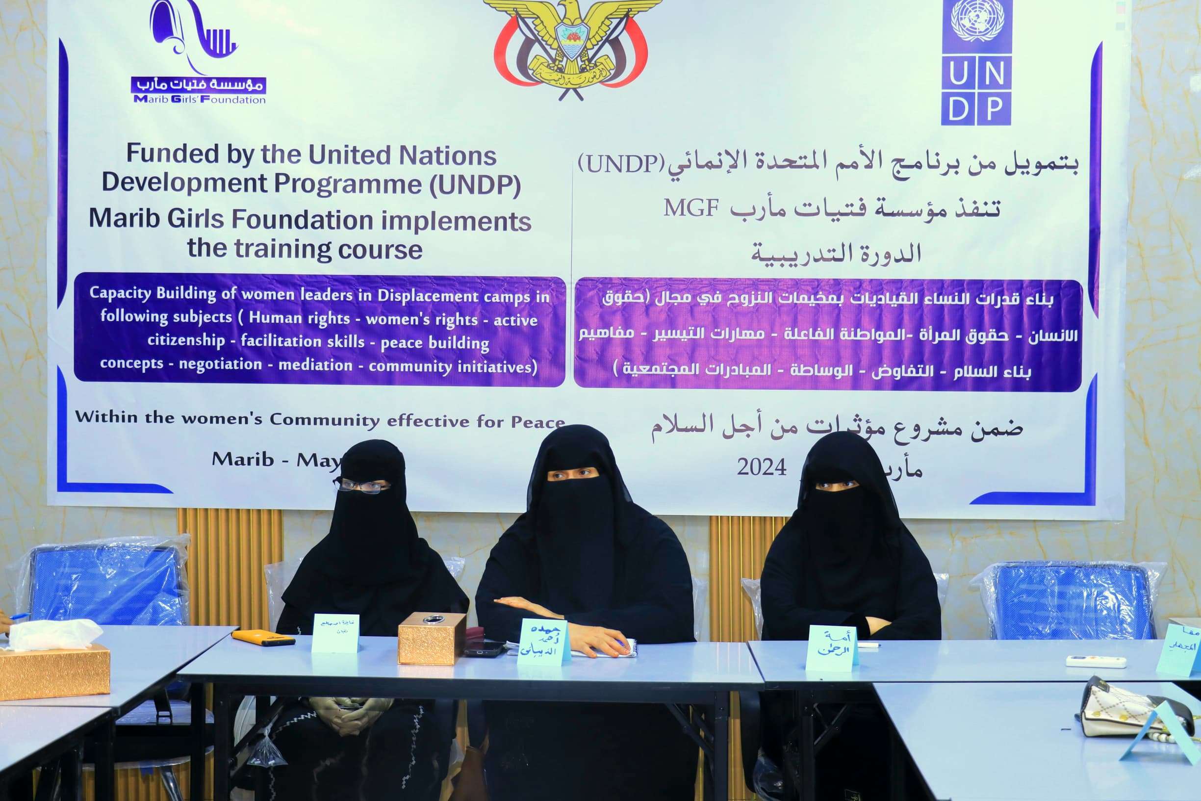 بدأت مؤسسة فتيات مأرب في تدريب 20 امرأة في بناء قدرات النساء القياديات في مخيمات النزوح بمحافظة مأرب، وذلك ضمن مشروع مؤثرات من أجل السلام، والذي تنفذه المؤسسة بتمويل من برنامج الأمم المتحدة الإنمائي UNDP.