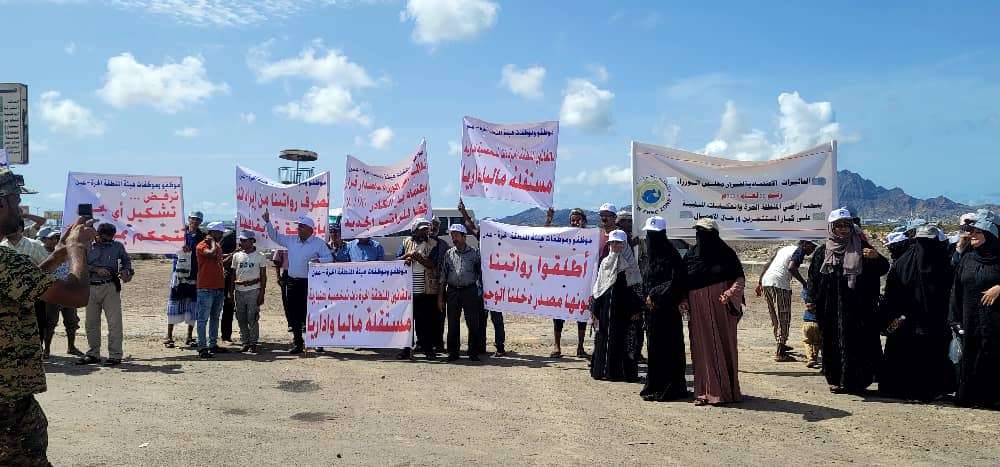حيث اعلن الموظفون استمرار وقفاتهم الاحتجاجية حتى تلبي الحكومة مطالبهم القانونية ويلوحون بوقفات تصعيدية بالأضراب الشامل ووقف كافة أنشطة الميناء وجمرك المنطقة الحرة عدن