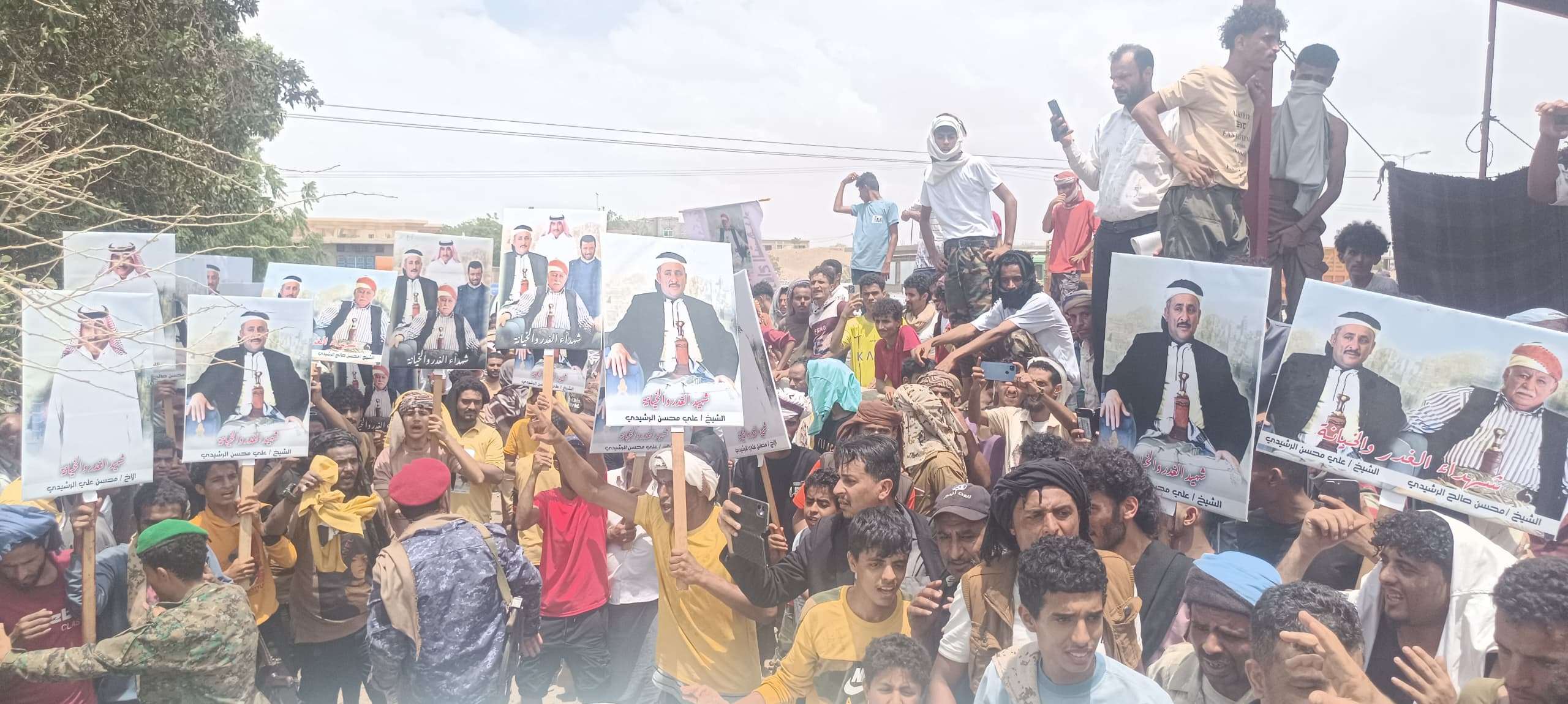 صور/ محاكمة حاشدة للمتهمين بقتل ال الرشيدي في يافع