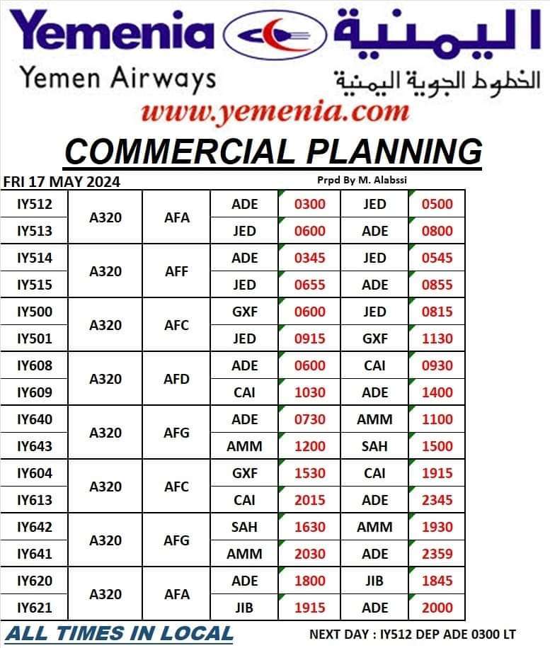 جدول رحلات الطيران غداً الجمعة 17 مايو