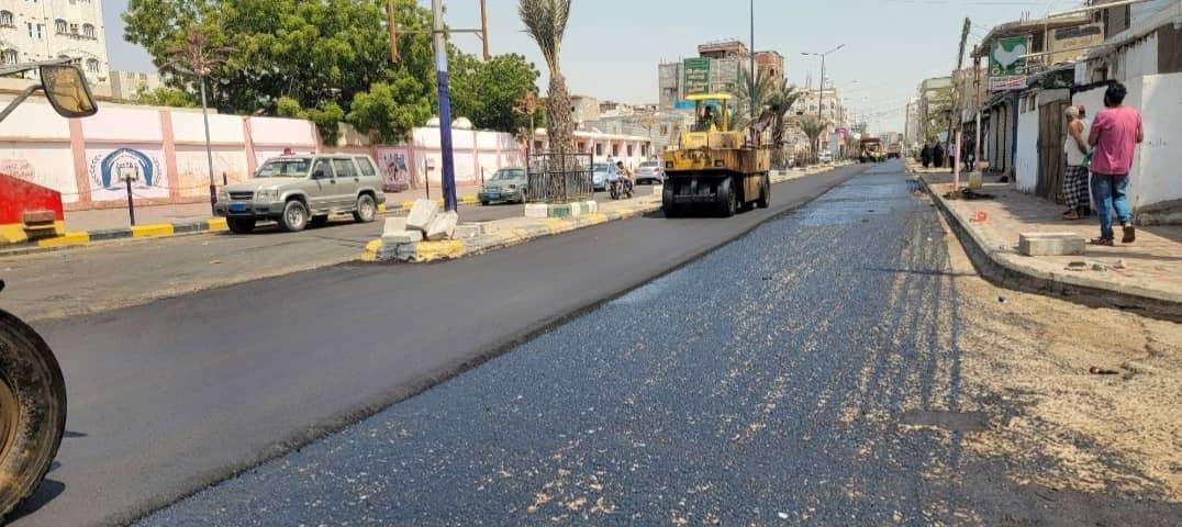 مدير عام الشيخ عثمان يتفقد أعمال فرش الطبقة الإسفلتية لشارع الفنان محمد سعد عبدالله