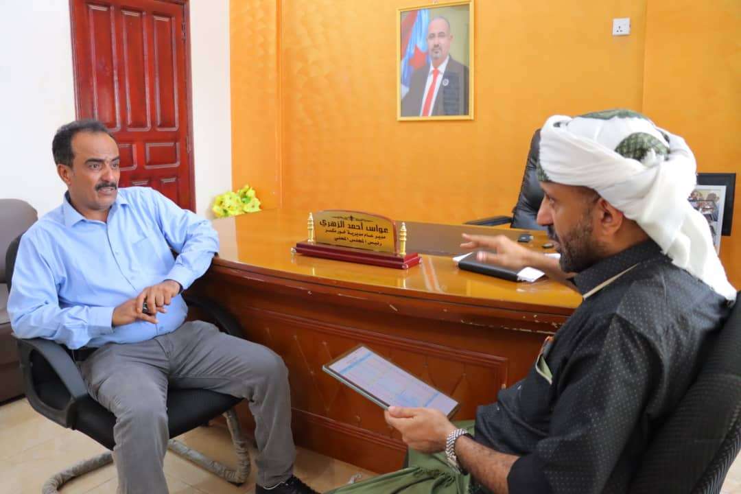 ناقش مدير عام مديرية خورمكسر عواس الزهري ، مع المدير العام لمكتب الواجبات بالعاصمة عدن احمد المحضار آلية تحصيل الواجبات الزكوية المستحقة بمديرية خورمكسر .