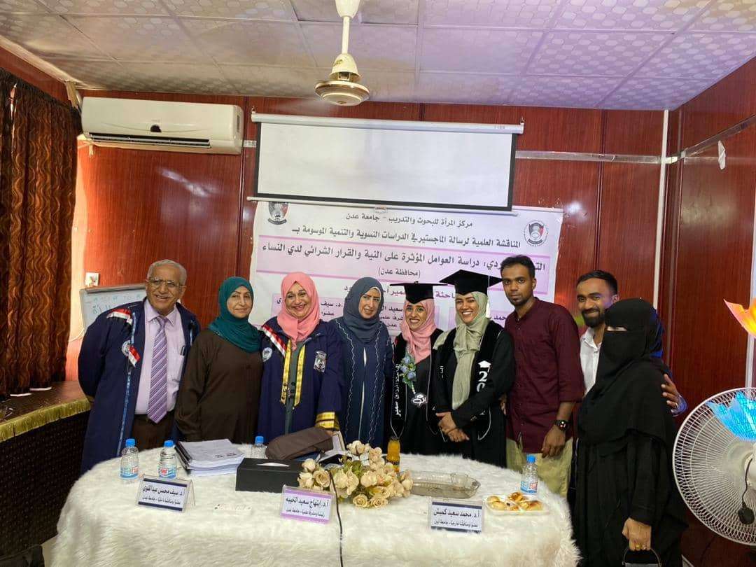 منح مركز دراسات المرأة جامعة عدن درجة الماجستير في برنامج الدراسات النسوية والتنمية للباحثتين إجلال نوشاد ، وارزاق سمير ، جامعة عدن بتقدير امتياز .