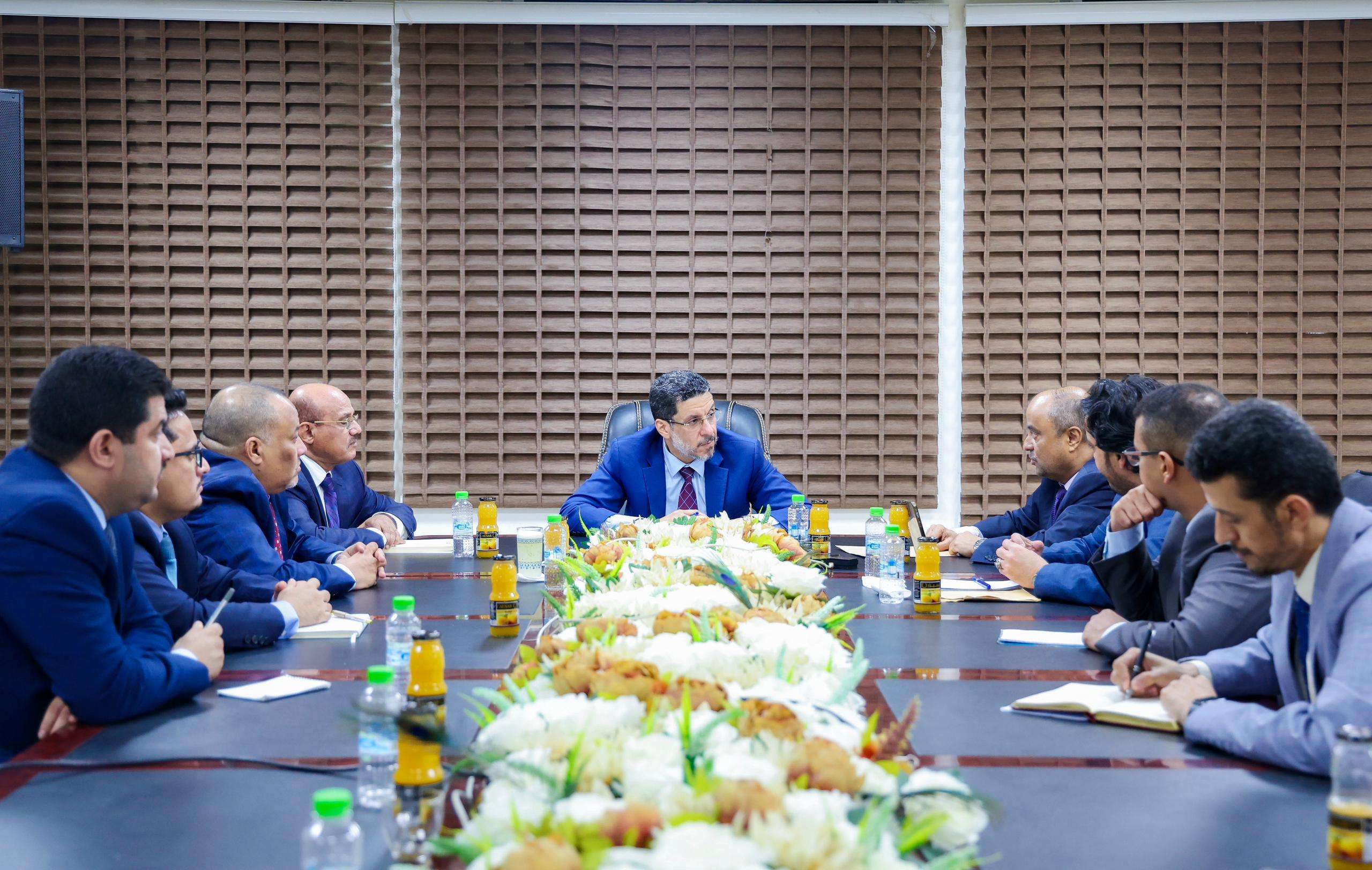 وشارك في الاجتماع، محافظ البنك المركزي اليمني، احمد غالب، ووزيرا المالية سالم صالح بن بريك، والكهرباء والطاقة مانع بن يمين، ومدير مكتب رئيس الوزراء المهندس انيس باحارثة.