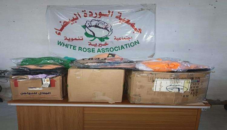 عدن.. جمعية الوردة البيضاء توزع ملابس نسائية على الأسر الفقيرة بالفارسي