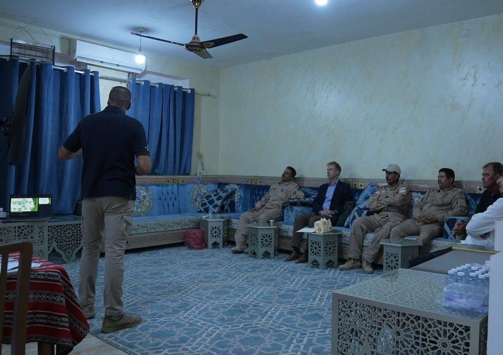 وخلال الزيارة، استمع المستشار الإنساني، من مدير عمليات “مسام” بمأرب، إلى شرح حول الآليات والوسائل التي يعمل بها المشروع.