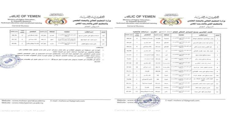 أعلنت وزارة التعليم العالي والبحث العلمي والتعليم الفني والتدريب المهني عن أسماء الطلاب الفائزين بمنح التبادل الثقافي للعام ٢٠٢٤-٢٠٢٥م إلى المملكة المغربية - دراسات جامعية.