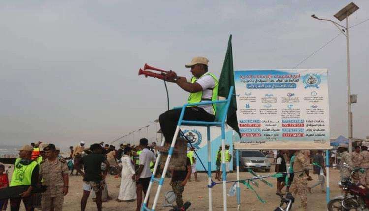 خفر السواحل بحضرموت تبتكر طريقة جديدة لتحذير مرتادي البحر من المناطق الخطيرة