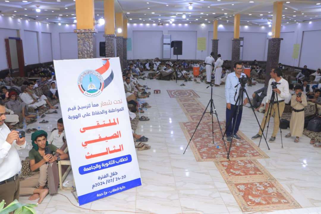دشنت دائرة الطلاب بالتجمع اليمني للإصلاح بمحافظة حجة اليوم فعاليات الملتقى الصيفي الثالث، لطلاب الثانوية والجامعة، تحت شعار "معا لترسيخ قيم المواطنة والحفاظ على الهوية".