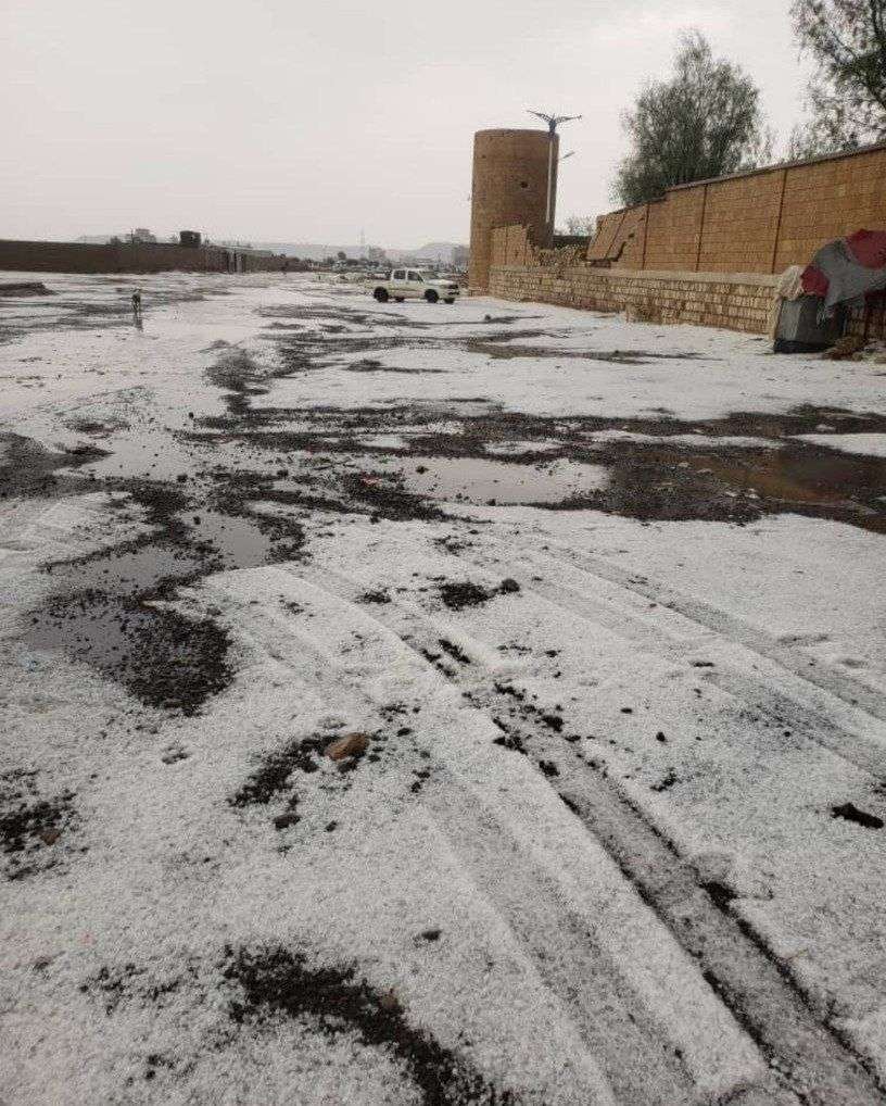 وافاد مواطنون بتساقط امطار غزيرة والثلج على صعدة لتتغطى المدينة باللون الابيض لاول مرة بفصل الصيف