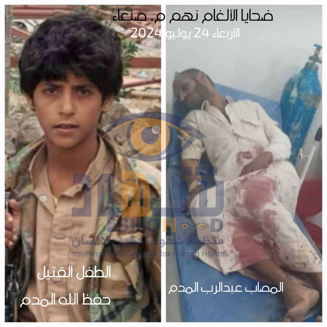 وقالت المنظمة ، أن انفجار لغم أرضي اليوم الاربعاء ادى إلى مقتل الطفل رداد المدام، البالغ من العمر 15 عاماً، وإصابة عبدالرب صالح المدم، البالغ من العمر 24 عاماً، بجروح خطيرة أثناء رعيهما للأغنام في الأراضي الزراعية بالقرب من قريتهما بران "بيت المدم".