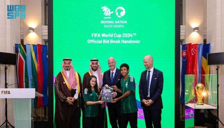 سلّمت المملكة العربية السعودية، اليوم الاثنين, رسميًّا ملف الترشّح لاستضافة بطولة كأس العالم FIFA™ 2034، وذلك بالعاصمة الفرنسية باريس في حفل أقامه الاتحاد الدولي لكرة القدم، وتم تسليم الملف من خلال وفد رسمي برئاسة صاحب السمو الملكي الأمير عبدالعزيز بن تركي بن فيصل بن عبدالعزيز وزير الرياضة رئيس اللجنة الأولمبية والبارالمبية السعودية، ورئيس الاتحاد السعودي لكرة القدم ياسر المسحل، إضافة لطفلين من مراكز التدريب الإقليمية للاتحاد السعودي لكرة القدم.