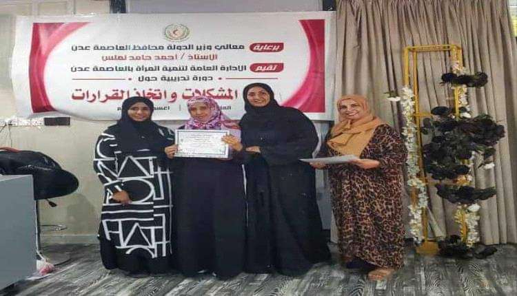 عدن ..إدارة تنمية المرأة تختتم دورة حول (حل المشكلات واتخاذ القرارات)