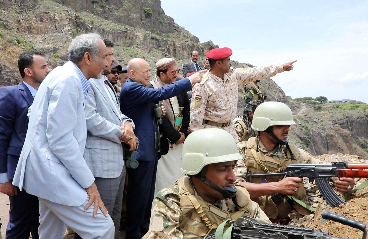 قام فخامة الرئيس الدكتور رشاد محمد العليمي، رئيس مجلس القيادة الرئاسي، القائد الاعلى للقوات المسلحة، ومعه عضوا المجلس الدكتور عبدالله العليمي، والشيخ عثمان مجلي، وعدد من قيادات الدولة الوزارية، والعسكرية، والامنية بزيارة تفقدية الى عدد من جبهات القتال في محافظة تعز.