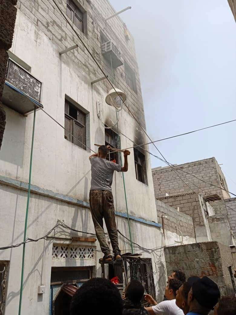 اندلع حريق قبل قليل في بيت مكون من 3 ادوار بالمنصورة بلوك 12 بمحافظة عدن.