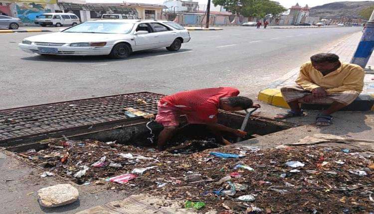 صندوق النظافة بصيرة يواصل رفع المخلفات المتراكمة بممرات السيول في عدن