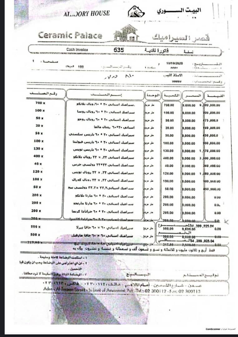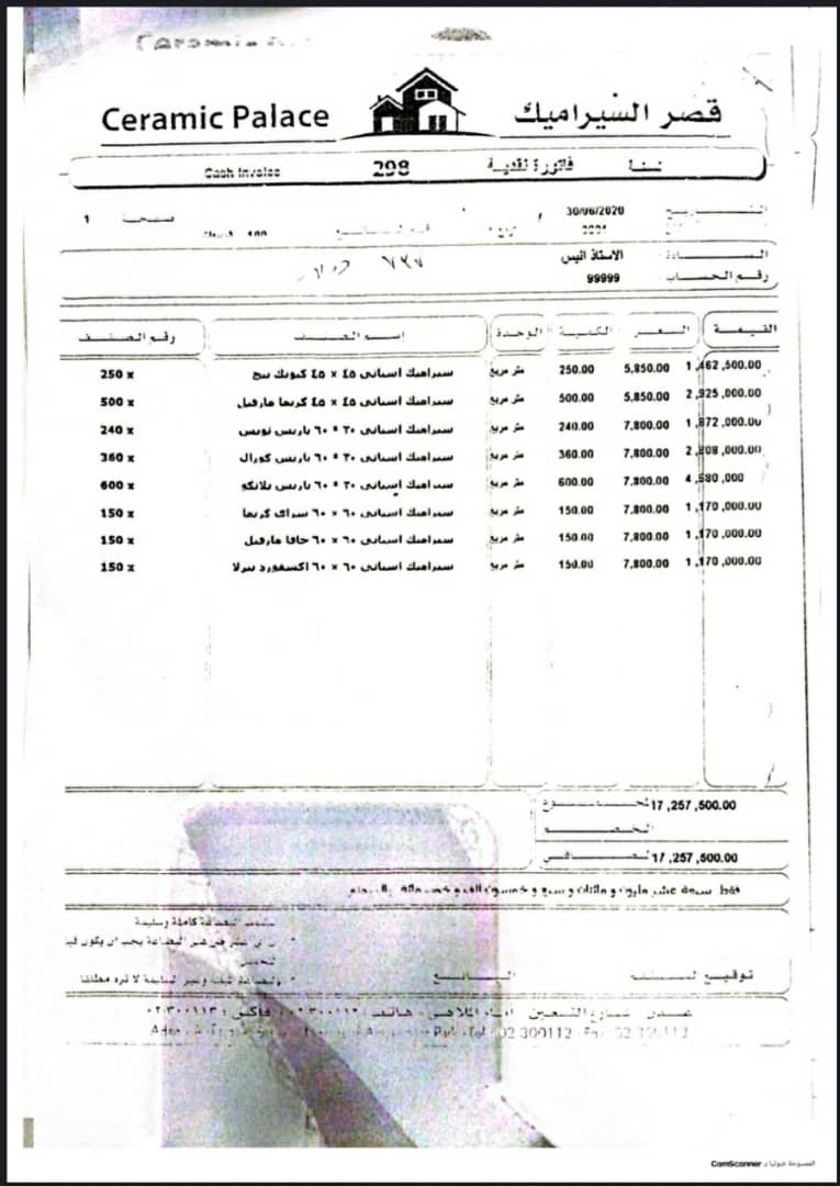 وتشير عدة وثائق وفواتير إلى حجم السحبيات والكميات الكبيرة من البضائع من قصر السيراميك والبيت السوري للسيراميك والتي تم سحبها لتشطيب الفيلات الثلاث التابعة لأنيس باحارثة مقابل استخراج الجنسية اليمنية للأخوين السوريين –بحسب محاضر جمع الاستدلالات.