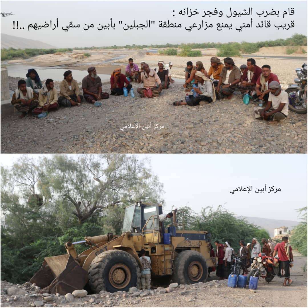 قام بضرب الشيول وفجر خزانه : قريب قائد أمني يمنع مزارعي منطقة "الجبلين" بأبين من سقي أراضيهم