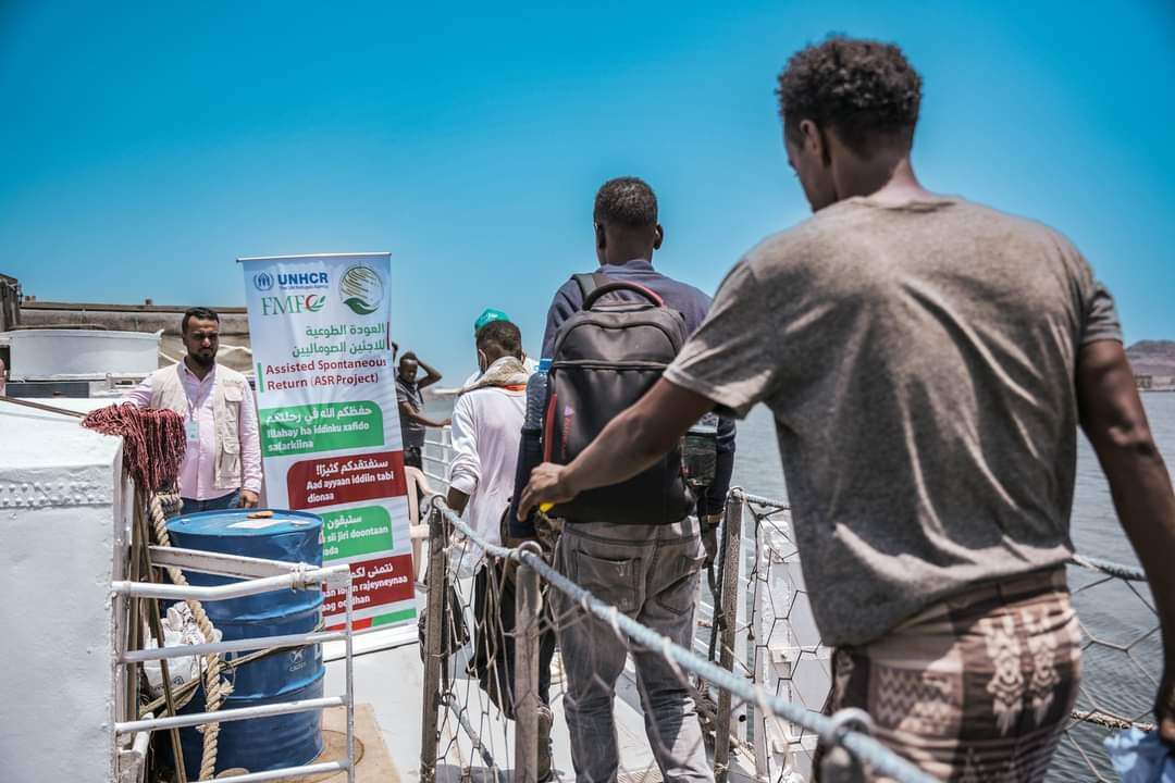 بالشراكة مع المفوضية السامية للأمم المتحدة لشؤون اللاجئين دشنت مؤسسة FMF برنامج العودة الطوعية للاجئين الصوماليين للعام 2024 بالرحلة رقم 57 وعلى متنها 153 لاجئ صومالي منطلقين من ميناء عدن الى ميناء بربرة بحضور السيد ياسر واريس نائب ممثل المفوضية السامية للأمم المتحدة لشؤون اللاجئين في اليمن، والسيدة لايسي فارياس ضابط الحماية، والسيد عبد الرشيد ديريا ضابط البرامج والدكتور مهيب عباد رئيس المؤسسة.