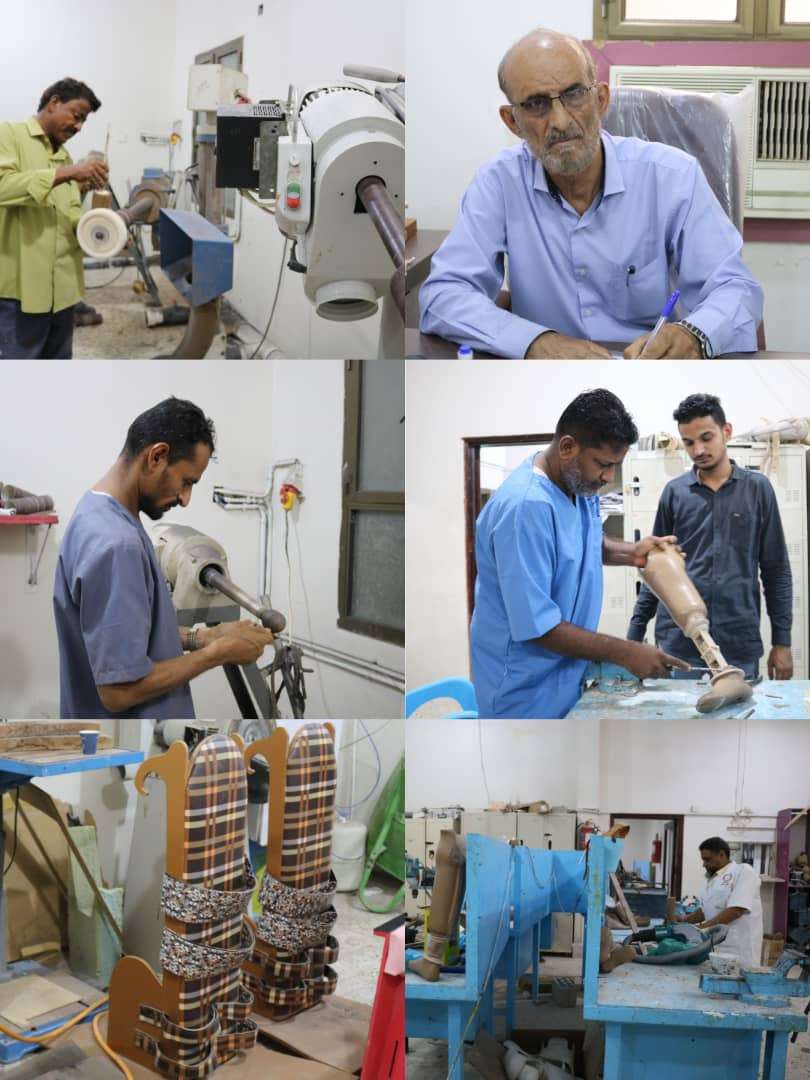 وعرج الدكتور المفلحي إلى تقديم شرح مفصل عن الاختصاصيين والفنيين المتواجدين في المركز، حيث يبلغ عددهم ستة من خريجي الهند وجامعة صنعاء وهم على درجة عالية من التأهيل والخبرة و الكفاءة في صناعة الأطراف والعلاج الطبيعي.