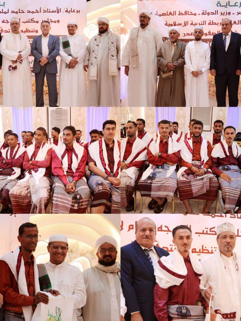 برعاية الاستاذ احمد حامد لملس وزير الدولة محافظة عدن و مجلس مكتب الموجه العام لأربطة التربية الاسلامية وتنظيم منتدى شباب الصفوة محافظة عدن دشن صباح اليوم في العاصمة عدن مهرجان الصفوه للزواج الجماعي السادس لعدد 54 عريسا وعروس من جميع المحافظات .