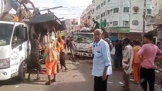 وتبع تنفيذ الحملة أعمال رفع للمخلفات وبقايا الاكشاك البسطات والعوائل وفتح طريق المشاة و توسعة الطريق .