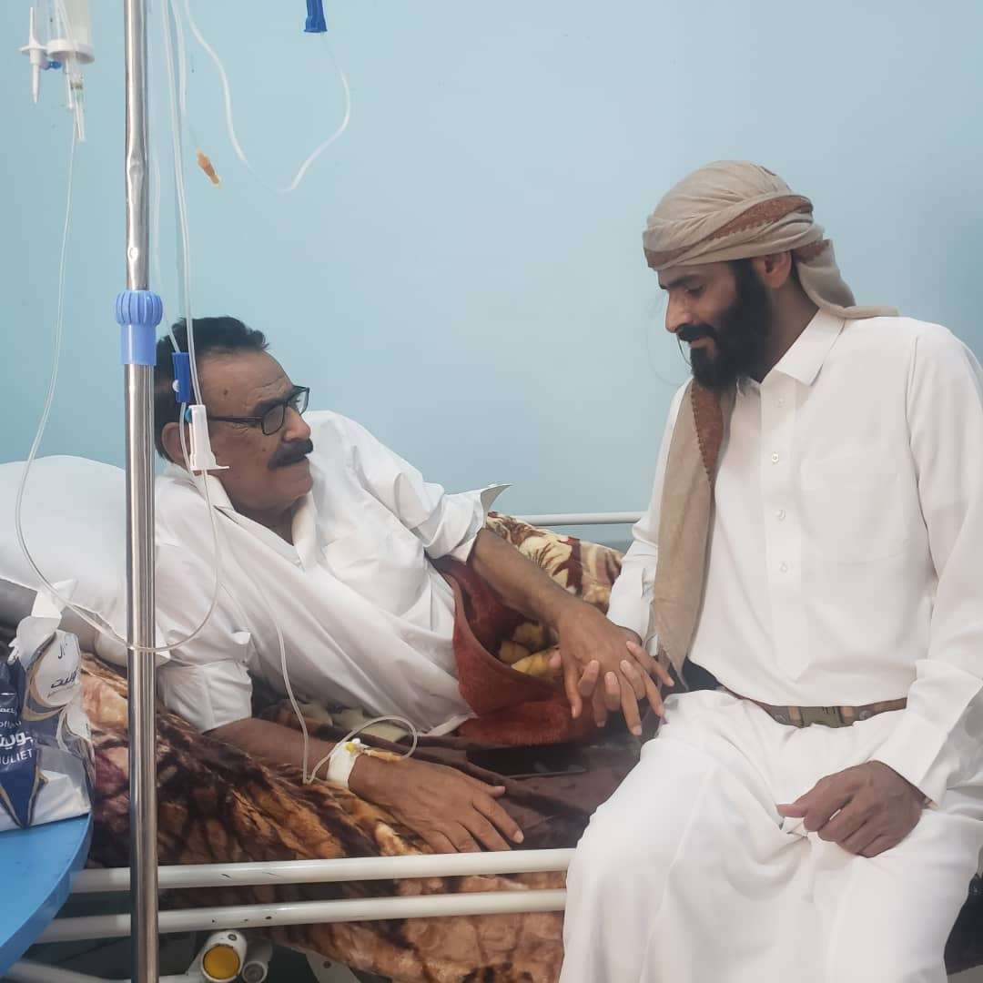 القائد العام لقوات محور سبأ يقوم بزيارة الشيخ حسين السعدي للاطمئنان على صحته