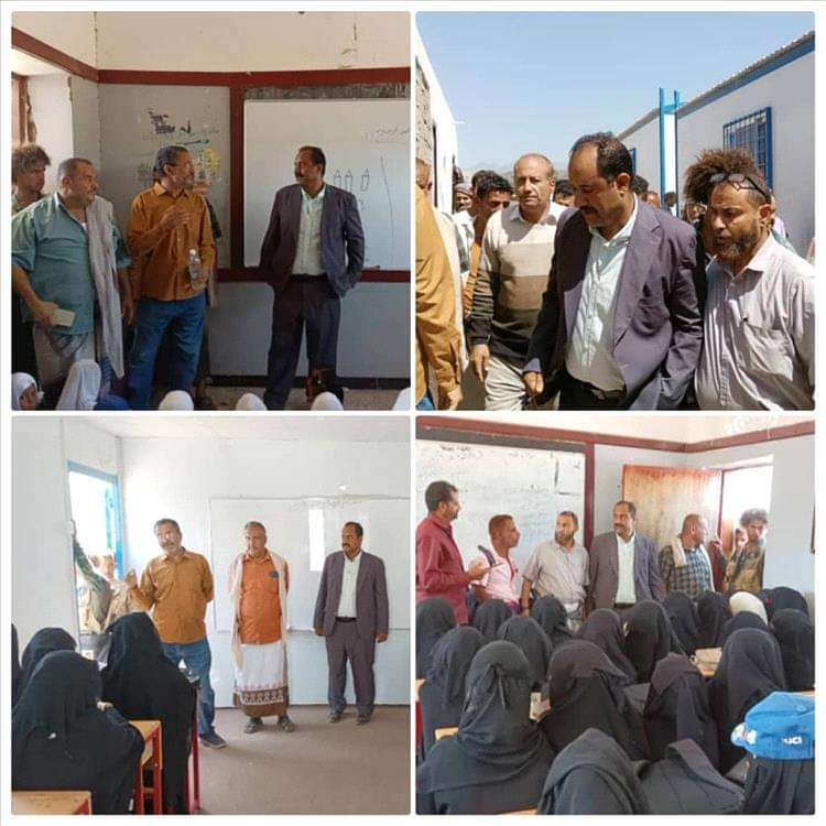 ووجه المدير العام ادارة المدرسة بفتح اي فصول دراسية مغلقة واستيعاب الطلاب للدراسة فيها ووضع اي اثاث للمدرسة بفصل واحد وتنظيم العملية التعليمية بالمدرسة ومعالجة اي قصور موجود وبانه سيقوم بمتابعة ادارة التربية بالمديرية من اجل تكثيف الجهود لمتابعة الادارات المدرسية والمعلمين، وحثهم على الانضباط بالدوام المدرسي، وانه سيعمل من اجل تغطية العجز الموجود بالمعلمين بالمدرسة وكذلك متابعة الجهات الداعمة من اجل بناء فصول دراسية بديلة للتي تعرضت للقصف وضرورة تكاتف الجهود المجتمعية والتعاون من اجل نجاح العملية التعليمية خدمة لأبناءنا الطلاب في تحصيلهم العلمي
