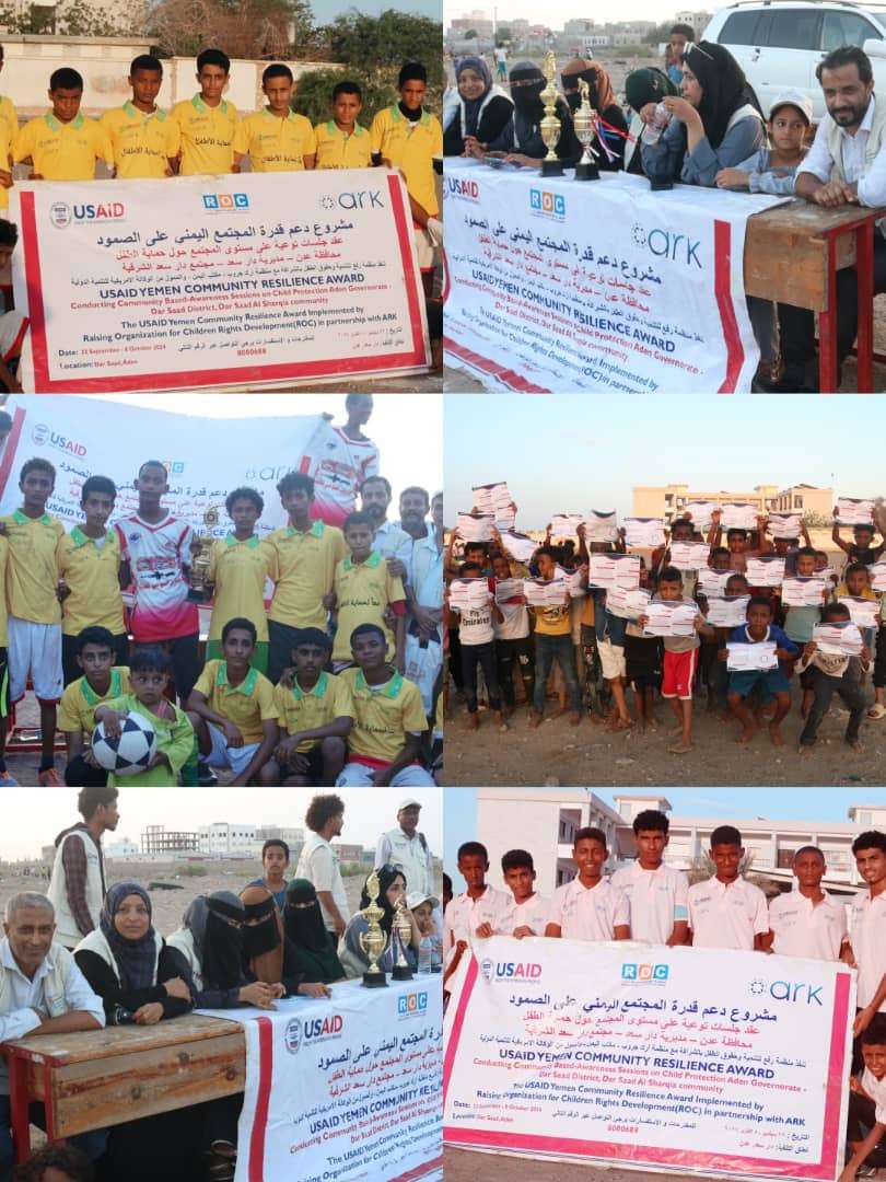 في اطار مشروع دعم قدرة المجتمع اليمني على الصمود «مباراة ودية» اقامتها منظمة رفع للتنمية وحقوق الطفل