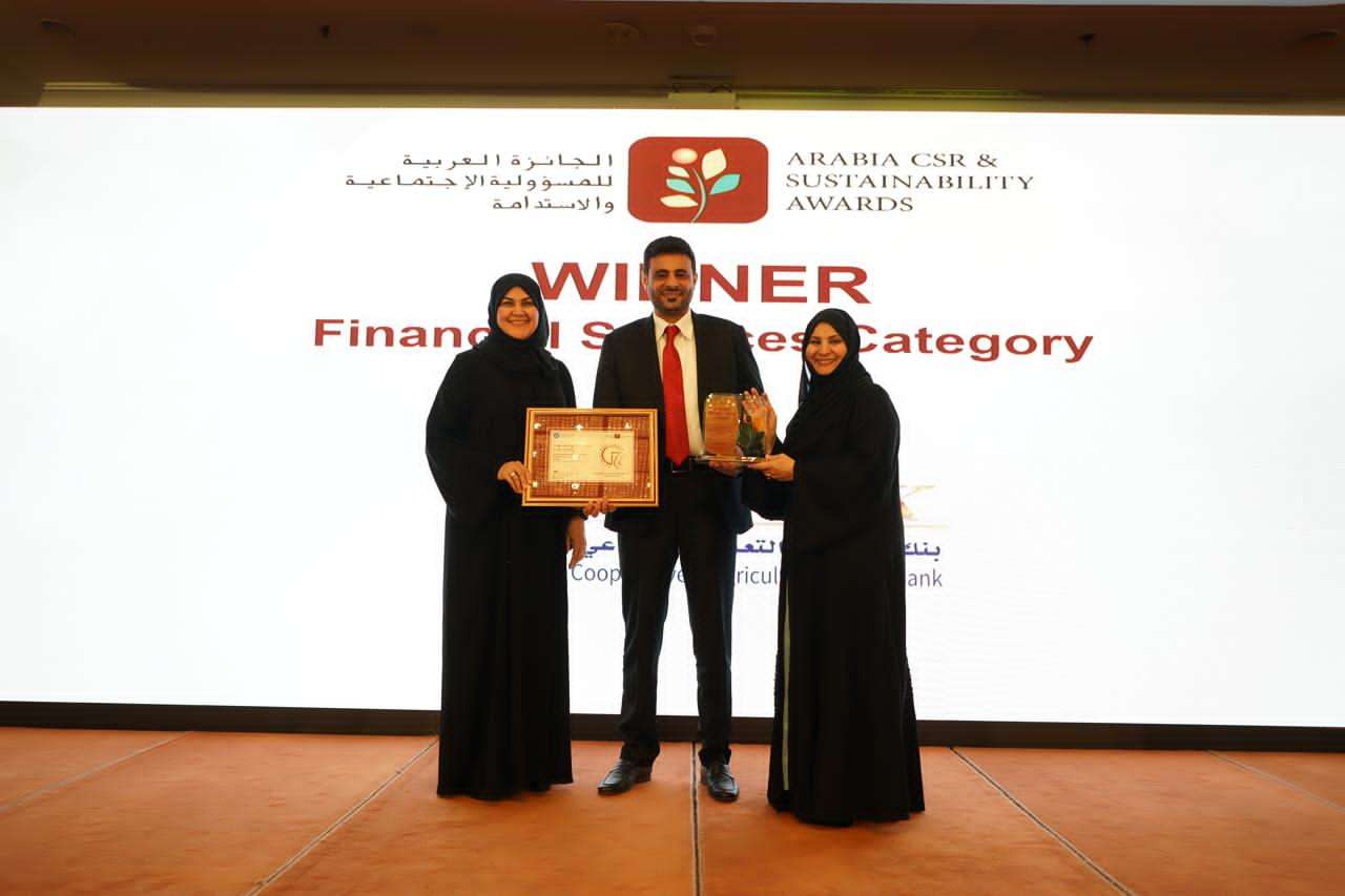 منحت الشبكة العربية للمسؤولية الإجتماعية "Arabia CSR" بنك التسليف التعاوني والزراعي «كاك بنك» المركز الأول في الجائزة العربية للمسؤولية الاجتماعية والاستدامة في دورتها السابعة عشر، والتي أقيمت شية يوم أمس الخميس في مدينة دبي في دولة الإمارات العربية المتحدة، وتسلمها القائم بأعمال رئيس مجلس الإدارة، الرئيس التنفيذي، الأستاذ حاشد الهمداني.