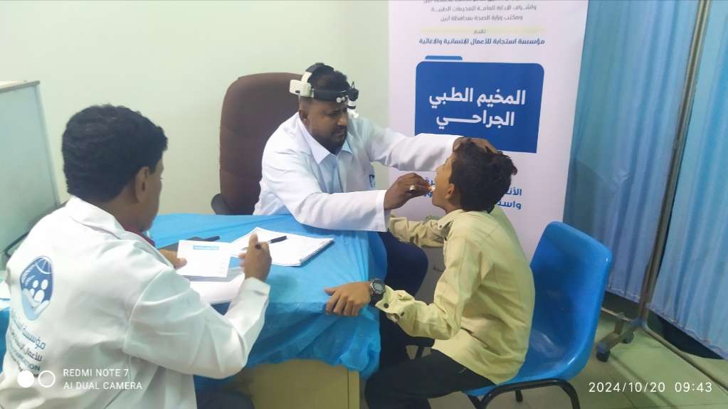 برعاية وزير الصحة العامة والسكان الدكتور قاسم محمد بحيبح ومحافظ محافظة أبين اللواء الركن أبوبكر حسين وتحت اشراف الادارة العامة للمخيمات الطبية ومكتب وزارة الصحة العامة والسكان بمحافظة أبين وبحضور الدكتور صالح الثرم مدير عام مكتب الصحة والسكان بأبين والدكتور حسين عبدالباري السقاف رئيس هيئة مستشفى الرازي العام بأبين بدأ المخيم الطبي الجراحي المجاني الذي يقام في هيئة مستشفى الرازي العام بمحافظة أبين مرحلته الأولى وهي التشخيص ومعاينة المرضى .