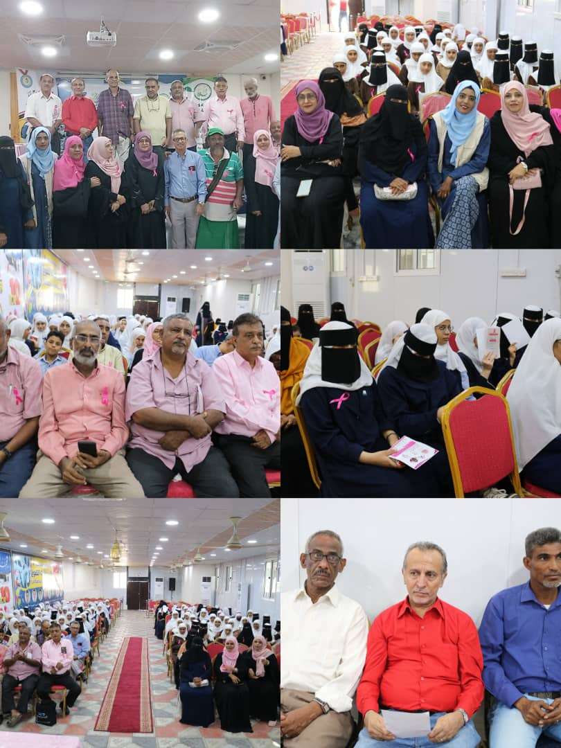 اقيمت صباح اليوم في العاصمة عدن محاضرة توعوية اقامتها جمعية عبود 84 الاجتماعية التنموية بعنوان الكشف المبكر لسرطان الثدي بالتعاون مع المؤسسة الوطنية لمكافحة السرطان والتي استهدفت حوالي 150 طالبة من طلاب الثانوية العامة في مدارس التفوق النموذجية ومدرسة 14 اكتوبر مع طاقم المعلمات.