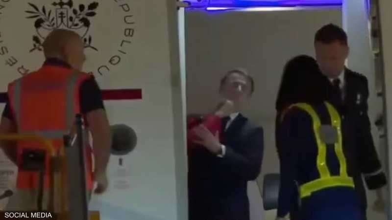 وقد بدت على ماكرون بعض الدهشة للحظات، قبل أن يستعيد توزانه البروتوكولي ويغادر الطائرة.